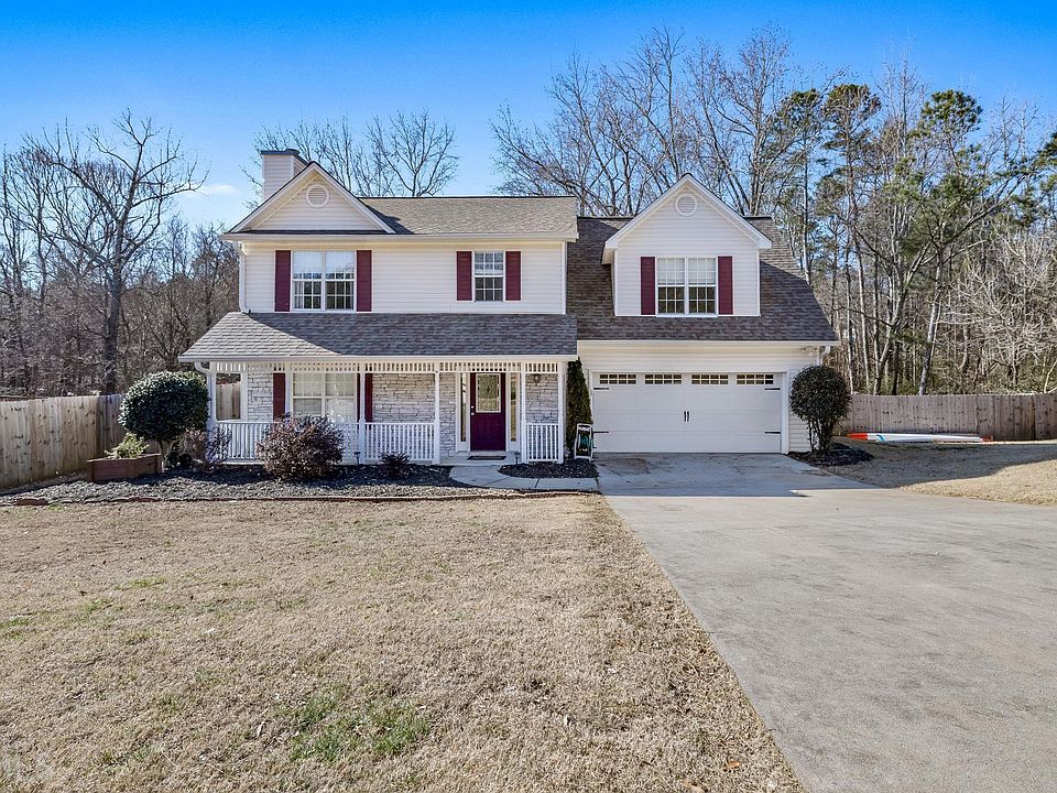 Incredible Home Back on Market! Buyers were unable to close. Come make this dream home yours! Welcome home to your like new Traditional home with a stacked stone rocking chair front porch, private, large backyard with a fire pit, pool, and wooded view all inside Gwinnett County and with NO HOA! Enjoy being close to the city with the privacy of 1.59 acres. This home has all the upgrades including new flooring throughout and updated kitchen with granite countertops, new backsplash, stainless steel appliances and primary bath with separate soaking tub and shower. The large family room opens up into the separate dining room with French doors to the backyard and access to the kitchen. Large mudroom off of the garage and kitchen also has access to the back yard, party deck and 27 foot pool. Upstairs you'll find your large primary bedroom and en-suite and three secondary bedrooms. You will not want to miss the extra storage in the garage. The walls are lined with steel shelving and a large storage closet in the back. The second refrigerator in the garage comes with the home too! Do not miss this opportunity to make this house yours!