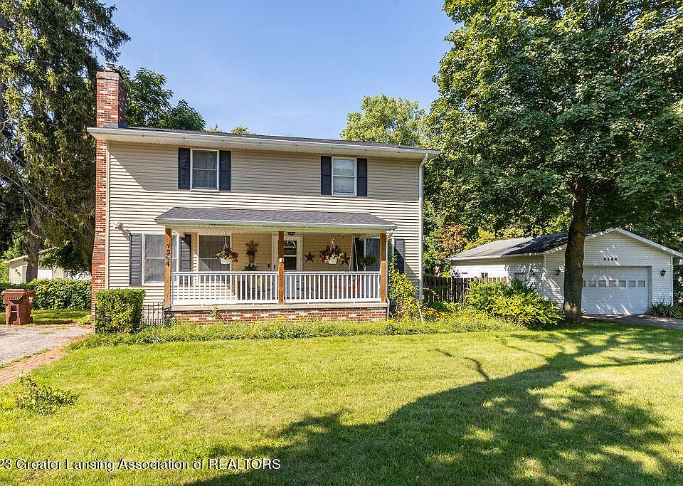 Holt Schools! Special offering for this charming country home nestled on 1 acre parcel with 6-7 bedrooms, 2.5 baths and a main floor primary suite! Enjoy the fabulous location close to Valhalla Park with swimming and beach access, river trail, playground, picnic area and more. The welcoming covered front porch, to be enjoyed, adds extended living space. This immaculate and well cared for and loved home offers a large living area accented by a fireplace, a main floor study, a first-floor laundry room, a drop zone, plus a good-sized kitchen with great cabinet space accented by a special buffet, newer stainless-steel appliances (2019), eating bar and island. The spacious eating area is accented with a double mulled window to enjoy the outside scenery. A rare find with an owners en-suite complete with a walk-in closet and a full bath. 6 more bedrooms on the second floor with hardwood flooring. The mud room gives way to the large deck and fenced in back yard. The park like setting with mature trees including a peach tree and scads of blueberries, also holds a 2 plus car detached 24 x 32 garage. Close to shopping, schools, highway access, eateries and more! See the attached list of upgrades since ownership. Newer shingles, furnace, and air. A home to treasure to be sure.