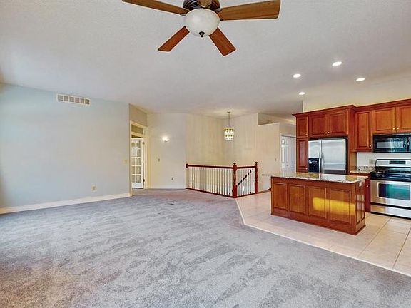 Beautiful end unit one level twin home with a finished lower level. Great views overlooking the wetlands and is located in the cul de sac. This home has a nice open design floor plan. Kitchen features new granite counters & microwave plus a center island for even more seating & counter space! Main floor owners suite, plus an office/ bedroom and laundry hook up on the main level. Freshly painted in the owner's suite and main level bath. The lower level has a large bedroom, 3/4 bath, finished lookout family room and lots of storage!