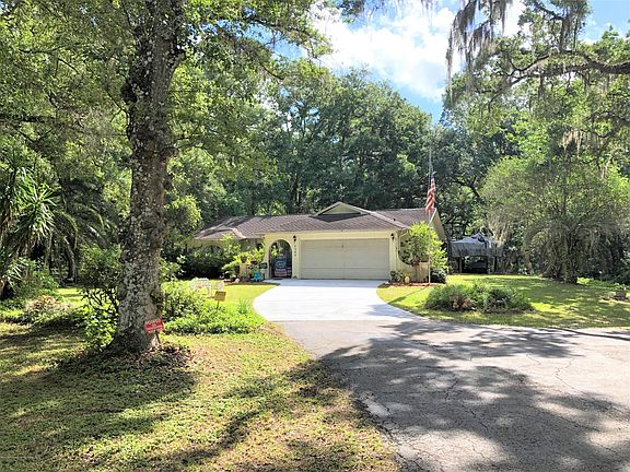 Three bedroom, two bathroom, pool home on 2.5 acres in Brooksville! Home features attached two car garage, large bedrooms, a split floor plan with master suite, indoor laundry, and L shaped living and dining area. Access screened enclosure with in ground pool through the master suite, spare bedroom and dining area. . The property offers seclusion on all sides and includes a shed and workshop.