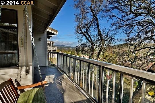 Spectacular Redwood model on upper level. End unit with wooded oak tree setting, privacy and breathtaking views. Absolute pristine condition. Cozy den with custom cabinets, beautiful bright ceramic tile kitchen, high ceilings, dual pane windows, and double-sided fireplace. Garage & lots of storage.