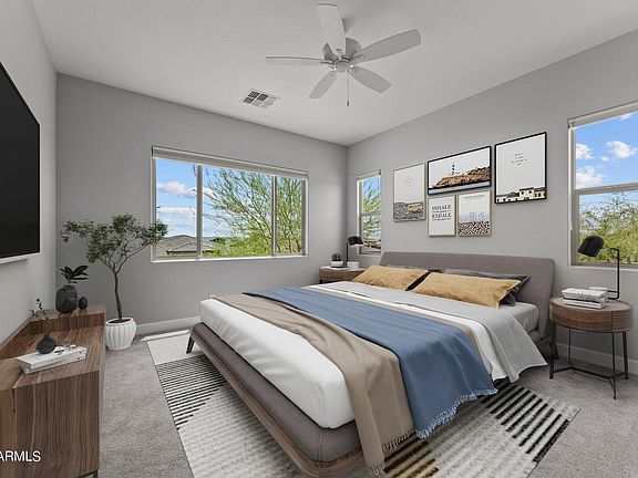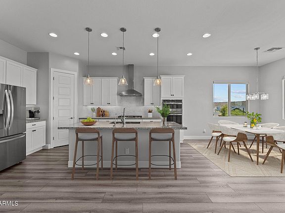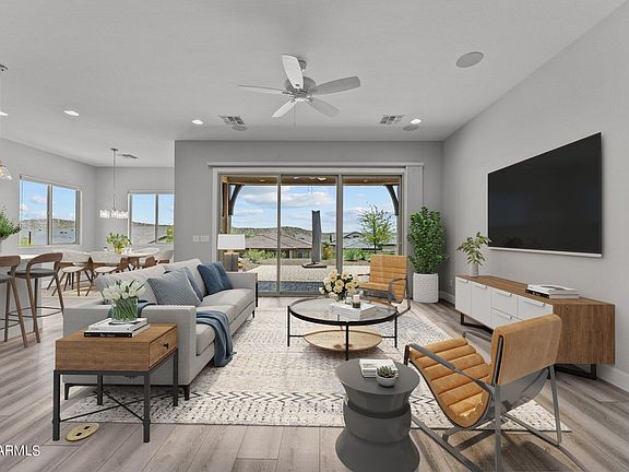 Welcome to 4365 Buffalo Ridge! Nestled within the prestigious Wickenburg Ranch community, this exquisite home epitomizes modern luxury and comfort. As you step inside, a wall of sliding glass doors floods the space with natural light. The kitchen boasts an expansive island and granite countertops, complemented by a convenient walk-in pantry and sleek hood range. An open floor plan effortlessly connects the kitchen to the inviting living area, adorned with a cozy den with french doors for relaxation or work. 2 bedrooms offer restful retreats, accompanied by 2 luxurious bathrooms for ultimate convenience. Outside, a low-maintenance landscaped backyard beckons with its tranquil ambiance, featuring a covered patio perfect for alfresco dining for cozy evenings under the stars.