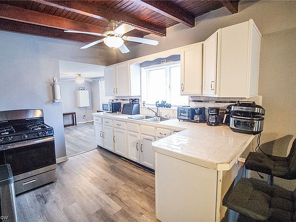 This beautiful 2-3 bedroom ranch in Austintown School District features a convenient floorplan with newer floors and fresh paint throughout, the one-of-a-kind wood ceilings with beams in living room, kitchen, bedrooms and rustic bathroom add tons of charm! Newer Furnace and Hot water tank 2021. This house is conveniently located near schools, shopping and dining!! Call to schedule a showing today!!