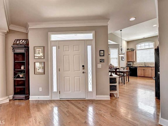 Amazing James Creek one owner home with stone & brick front; Covered front entrance welcomes you into this home that has a great open floor plan with soaring ceilings; Tons of natural light pours in from the front to back of home; New roof, New carpet, New hot water heater; Hardwoods on entire main floor; Eat-in kitchen offers an abundance of countertop space & has neutral stained cabinets; Dining area seats 12 easily and the great room offers a gas fireplace and access to the private backyard area. Beautiful oversized owner's suite on main floor has a double sinkvanity in bathroom, large tub & separate tiled shower plus a huge closet; The impressive curved wall and open staircase with iron balusters lead the way to the upstairs where there is a loft great as an office, playroom or exercise area; New neutral carpet throughout upstairs, 3 bedrooms & 2 full baths, one is an en-suite bath, walk-in closets; Upstairs laundry & large storage area. Exterior painted recently & there is new sod; James Creek has fantastic amenities, great schools and is close to shopping and Lake Lanier.