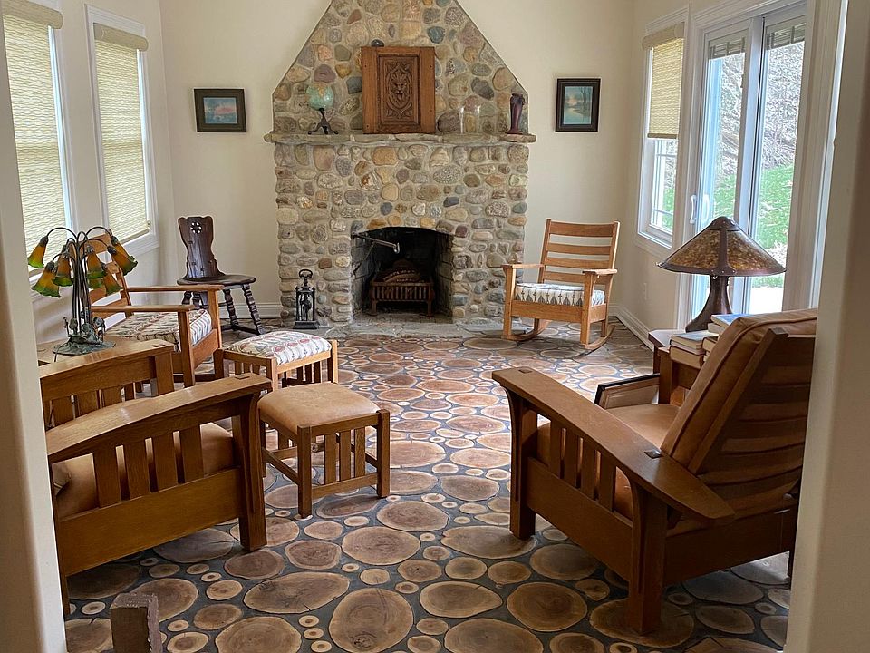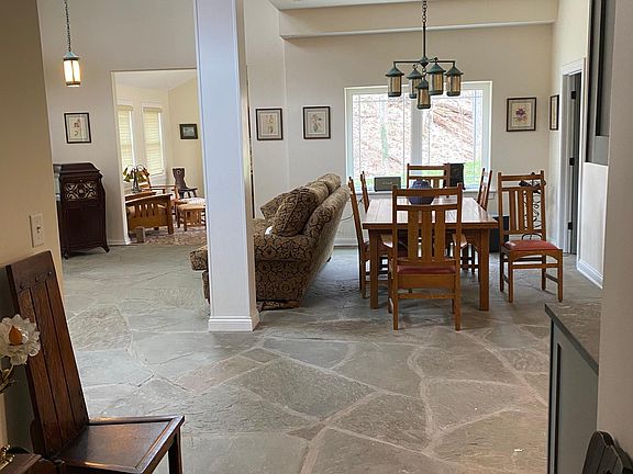 Extraordinary loft apartment surrounded by nature. This is an artisan's dream location. This home features stainless steel Kitchen Aid appliances. Granite kitchen and bathroom countertops. Natural stone and hardwood floors throughout brings nature indoors. Oversized windows with remote control solar shades provide views of the property and plenty of natural light. The second floor deck off the loft can be enjoyed watching deer congregate on almost 3.5 acres. The loft serves as the bedroom with double walk-in closets, The master bathroom suite has dual rainfall shower heads with a shower stall with premium tile. The fireplace features natural stone and walnut flooring. Please note this is a one bedroom loft style home with an attached oversized two car garage that is ideal for a single person or couple. No pets or smoking is permitted. Owner pays gas, trash removal and lawn care