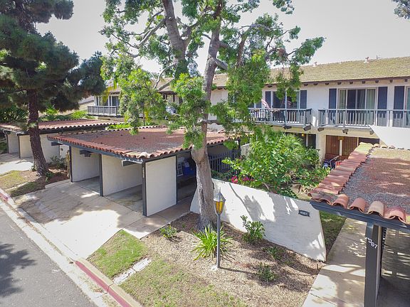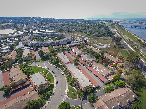 Location, location, location. Large townhouse w/ 2 huge suites (3rd bedroom has been opened to 2nd) over 1,852 square feet and 2.5 baths. Covered back patio was converted to room. Opens to serene estuary (Famosa Slough). Close to the beach with cool breezes. Community pool, quite tree-lined street in the back of the complex. Covered carport attached to house with additional covered space steps from the front door. Watch Sea World Fireworks from your home! Make sure to check out the open space in back.