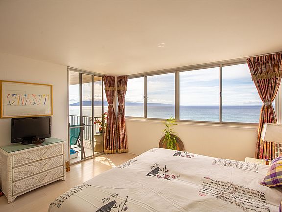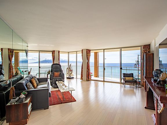 Breathtaking, an approximate 200-degree wrap-around oceanfront view looking through ceiling to floor windows and glass sliding doors. It is very rare for condo suites to have this exceptional view and perfectly set on the 10th floor. Sitting in the living room, nothing blocks your view and you enjoy the wide screen kind of spectacular ocean views and dramatic changing sunsets each day. There are also views of the two outer islands; Lanai to the left and Molokai to the right, bringing you fabulous sceneries. With a wrap-around lanai that measures 41 feet long and 254 square feet, you can enjoy breakfast and coffee while watching turtles swim and whales jump, take a sunbath ad gather to watch the beautiful sunset while enjoying wine. Located at the Royal Kahana, a premier beachfront resort that sits midway between Kaanapali and Kapalua. This 2-bedroom, 2.5 bathroom suite is elegant and newly renovated with white bamboo floors throughout and natural black marble floors in the dining room. The kitchen and bathroom feature sparkling granite counters and mahogany-colored cabinets. The dining room provides ample seating for up to six people with beautifully designed lighting from Italy. The kitchen provides modern appliances. Besides having an astounding ocean view the living room has a queen-sized sleeper sofa with a half bath just around the corner. The ocean front master bedroom en-suite has a king size bed, private full bath and direct access to the oceanfront lanai. The mountain view guest bedroom has a queen-size bed and private full bath. Some Features & Amenities Oceanfront wrap-around lanai, Oceanfront King Bed/Master Suite King Bed/Guest Bedroom Queen Sleeper Sofa Fully applianced Kitchen with Dishwasher, Disposal, Microwave, Washer and Dryer in the Unit, Central Air Conditioning, Ceiling Fans, 3 Flatscreen TVs, Guest Parking and Basement Parking, Owners Storage Room, Swimming Pool, Sauna, Salon and Spa Services, Exercise Facility, Shuffleboard, Barbecue on Property.
