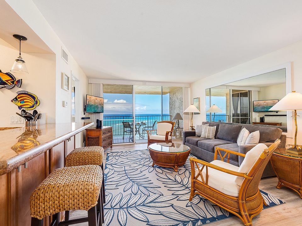 AVAILABLE OCEANFRONT direct view PENTHOUSE 12th floor view! APRIL 19 available through OCT 1 ONLY 30 day minimum tax and utilities $19 daily, excluding parking charged directly by the resort. MINUTES FROM KAANAPALI BEACH. This upscale condo RESORT is waiting for you. Near Shops, Restaurantes, DIRECT OCEANFRONT ON THE BEACH, VIEW TOP FLOOR PENTHOUSE. parking charged by resort directly of $18 daily or free street parking upon availability. Amazing ocean views. As you enter you are immediately drawn to the floor to ceiling sliding glass doors that open to your private lanai. Take in the mesmerizing views of Molokai and the enchanting Maui waters. Catch a whale breaching during season, sea turtles are an attraction all year long. Adult Community for those over the age of 30: 1or 2 guests only MINUTES FROM KAANAPALI -PENTHOUSE 12th TOP floor. AC,VIEW Direct Oceanfront, See Forever! This is Oceanfront and Fantastic View. Not suitable for infants or child due to high railing. It doesn't get any better than this view: panoramic ocean and colorful Maui sunset views from this direct oceanfront one bedroom / one bath condominium. Spend the day relaxing in the sun and surf. Enjoy snorkeling, paddle boarding and swimming in the warm waters of the Pacific. The resort's location makes it an excellent home base for exploring all that Maui has to offer. This Maui oceanfront promenade is also equipped with lounge chairs and picnic tables provides a wonderful place to enjoy your favorite beverage or meal while watching flaming sunsets, sea turtles, and humpback whales Each day here in paradise, we invite you to rise to the sound of waves gently crashing and enjoy your morning coffee on the covered lanai before setting out on your next Maui adventure. The fully equipped kitchen allows you to cook an island meal while watching the palms sway in the warm island breeze. You could even fire up the barbeque grill of the outdoor recreation and take the dining outside if you don't feel like cooking. Work up a little sweat at the on-site fitness center or out on the shuffleboard court before jumping in the cool ocean water. The Royal Kahana Resort offers beautifully landscaped grounds, grand sized pool area for guest use. Bask in the sun at the pool or on the huge grass lawn, both with clear views of the Pacific. Large sandy beach is just steps away. Activities concierge available in lobby to help book your Maui adventures. Situated between Ka'anapali and Kapalua, you are just moments from dining and shopping in Lahaina on Front Street, at Whaler's Village in Ka'anapali and at Kahana Gateway Shopping Center just up the street. Four of Maui's 14 Championship golf courses are within a few miles, including Kapalua Plantation Course which hosts the PGA Tour's Sentry Tournament of Champions. Drift off for the perfect nights rest. The bedroom features a king bed, large closet and access to the lanai. The bath offers exquisitely tiled shower and separate vanity. Unit Features: * Direct Ocean Front * Private Lanai with spectacular ocean views * Master bedroom opens directly to the oceanfront lanai * Fully Equipped kitchen with full sized appliances and granite countertops * Tiled walk-in shower * King sized bed * Ceiling Fans * Flat Screen Cable TV's in both living room * Complimentary WiFI/ AC *Washer/Dryer * Cleaning fee $249 required every 30 days. ___ Resort features: * Elevator access * Oceanfront heated swimming pool * Sandy Beach * Community BBQ's and eating area by pool *Fitness Center *Shuffle Board *Ping Pong Table *Concierge Desk to assist with snorkel and beach chair rentals or Snorkel Bob's in the Gateway Shopping center directly across the street. *Please note that the the size of the beach in front of the condo does change depending upon the current the time of year. * The resort is charging a nightly parking lot fee of eighteen per day subject to change. You may park off property on the street, however, parking is limited. Guests will pay this fee directly to the front desk when they pick up their parking passes on property. Pandemic Note: No Covid/ health refunds . We recommend you take out travel insurance. condiments not provided to reduce shared contact of foods. Guest count must be accurate. Not suitable for Children and infants due to railing height . APRIL 19- OCT 19, 2025 LEASE TERMS: 30 day minimum tax and utilities/ AC $19 daily parking fee charged by resort $18 daily Cleaning fee $249 monthly required