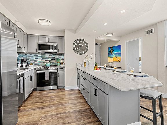 Oceanfront unitFifth-floor residenceFive star remodelCrystalline graniteCustom accentsStainless steel appliancesUnsurpassed natural light