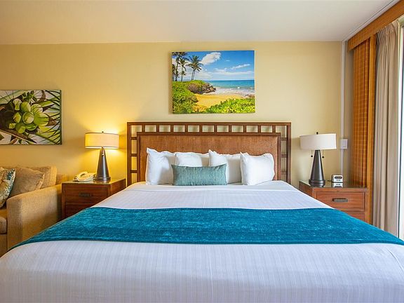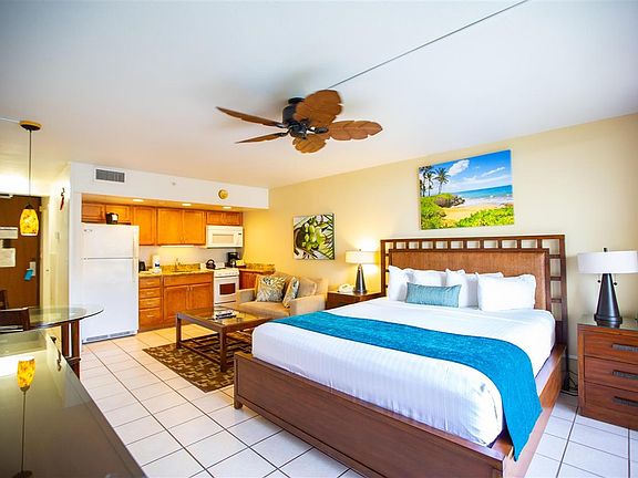 Royal Kahana 602 is in the quiet zone on the North side of the building perched on the 6th floor. The premium 02 stack faces Northwest. Unit 602 is a large studio Suite with a smart floor plan, ocean views, year round sunset views and whale watching during whale season. Walk outside to full sliding doors from the Living Room to a sitting area on the lanai overlooking the the grounds and Pacific Ocean below. The suite is fully furnished and includes a washer /dryer, central air conditioning and in the popular front desk vacation rental program. The unit is upgraded with tile floors granite counter tops and tile bathroom. Royal Kahana is Located between the West Maui Resorts of Kaanapali and Kapalua, amenities include; a gym, sauna, underground parking, elevators, an ocean front pool with BBQ's and is on Kahana Bay Beach.