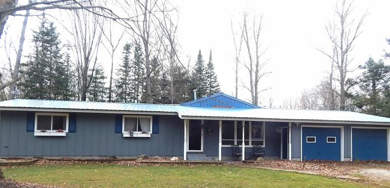 Spacious ranch home with 3 bedrooms, 2 1/2 baths. Wood burner in living room, knotty pine ceilings for that country feel. Laminate flooring throughout. New roof in 2022 well pump in 2022, drain field in 2019, 2 car attached garage. A deck off the dining room door wall going to the yard. Furnishings in the house are included. A great buy! Located in Lost Lake Woods Club. One membership to be transferred at purchase.