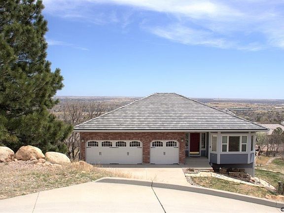 Spectacular 4-bedroom, 3-bathroom home with 3 car attached garage in Broadmoor Bluffs Estates! This property boasts fabulous panoramic mountain and city views! Upgraded kitchen within the last couple years including new backsplash, range hood ,dishwasher, fridge, sink and quartz countertops! Kitchen features built in Thermador convention oven, warming drawer and cabinets with roll-out drawers, breakfast bar and pantry. Upgraded luxury vinyl added throughout the main level. Seller added new sod and black aluminum fencing in the backyard, new pleated shades in the main living room and new vanity top in 1/2 bath !! Main level primary suite with 5-piece adjoining bath and walk in closet. Primary bedroom has new custom shutters. Gas fireplace in living room. Walkout basement with access to the lower-level deck and the backyard. New water heater in 2021. Other amenities include 6 panel doors, central air, new French door downstairs, hand textured walls. Tile roof was replaced in 2020.