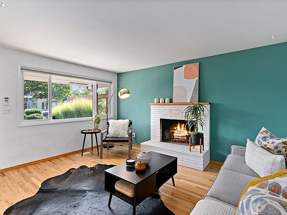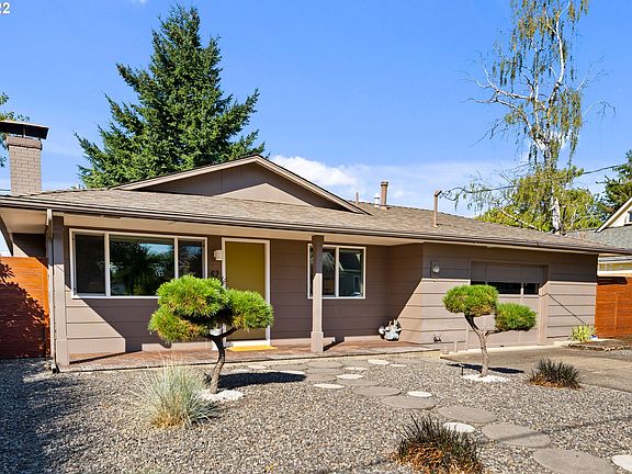 Darling fully renovated mid-century modern single level home. Beautiful hardwood floors, open floor plan and fireplace. Modern kitchen with butcher block countertops, built-in open shelves, subway tile backsplash, stainless steel appliances, range hood, and cork penny tile flooring. Bright, contemporary tiled bathroom. Great natural light. Low maintenance front yard; fully fenced large back yard. Oversized 1-car garage with built-ins. Easy access to popular neighborhood amenities. Welcome Home! [Home Energy Score = 7. HES Report at https://rpt.greenbuildingregistry.com/hes/OR10204821]