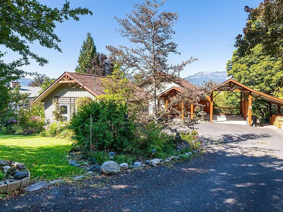 No comparison on the market at this time. This absolutely beautiful, custom built home was constructed in 2006 and is amazing both inside and out. Situated on 1.27 acres of maturely landscaped property with a stunning view of the Creston Valley and the mountains beyond. An open concept main floor awaits with quality finishes and features. Enjoy the 3 season sunroom throughout the day or evening. The lower level of the home adds to the living area and features a well laid out primary bedroom with spacious walk in closet and full ensuite. Don't be deceived when you first drive into the property, this home is much larger than it first appears. Added features include an attached carport, a detached double garage, a greenhouse, a very large storage building, a garden shed and more. The lush landscaping is what will catch your eye though, the fenced yard is filled with perennials, fruit trees, shrubs and expansive lawns that create a sense of tranquility. Situated just minutes from town and not far from beautiful Kootenay Lake, contact your REALTOR for more details on this unique and one of a kind home and property. Imagine yourself living here. (id:41440)