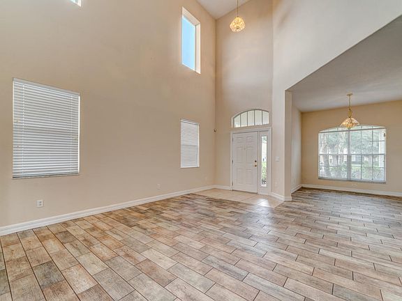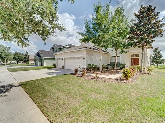 2006 Avatar Spruce with 5 bedrooms, 3 full bathrooms and a 3 car garage. This beautiful home features tile thoughout the first floor,which includes formal dining room, living room with 23ft ceiling, eat in kitchen with 42in cabinets, corian counters, breakfast bar overlooks large family room. Larger bedroom on first floor, upstairs has 3 secondary bedrooms and master suite with huge walk in closet, dual vanities and separate garden tub & shower. Screened in lanai situated on against DRA with no rear neighbors. 2,848 Living sqft, 3,812 Total sqft. Conveniently located in gated Sterling Hill with upscale amenities including 2 club houses, 2 swimming pools, exercise facility, tennis, basketball and more.