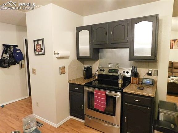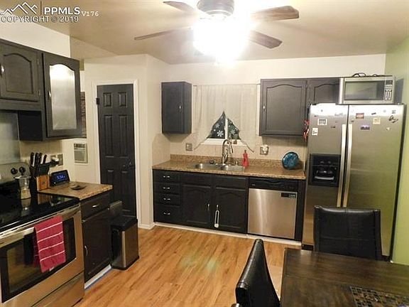 Beautiful 4 bedroom 3 bathroom home. Home features eating kitchen with bay window, stainless steel appliances and wood floors. Large living room has a walk out to the covered patio. Master bedroom has a private bath that has been remodeled. 2 additional bedrooms and a full bath complete this level. The basement has an additional bed room, bathroom and family room. Home has new paint inside and out, new roof and new carpet. Close to schools and Fort Carson.