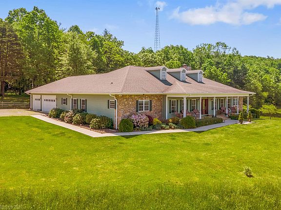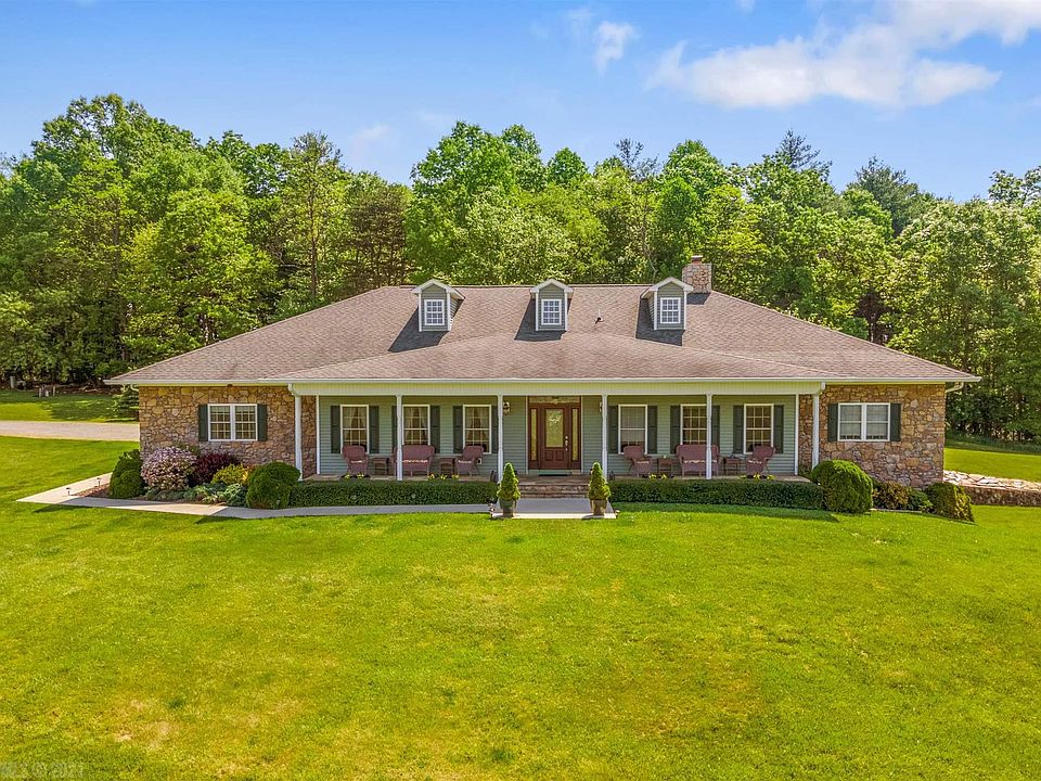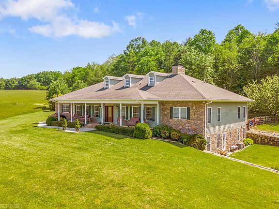 Immaculate ranch style home with long range views on 27+ well manicured' usable acres within good proximity to the Town of Floyd, Christiansburg/Blacksburg, and the City of Roanoke. This home has it all! One level living with oversized bathrooms, open living floor plan, great porches, and the list goes on. Additional bedrooms and living areas in the lower basement level w/ full wine cellar and bar/kitchenette. Home features basement to main level full wood burning fireplace, whole house generator (Brand New in 2021), new well pump, three car garage, fenced in area for pets, and plenty of room for horses or animals. This custom home has a chef's kitchen with double ovens, gas cooktop, large island and peninsula and lots of cabinets with granite countertops. Call today to schedule your appointment to see this amazing property.
