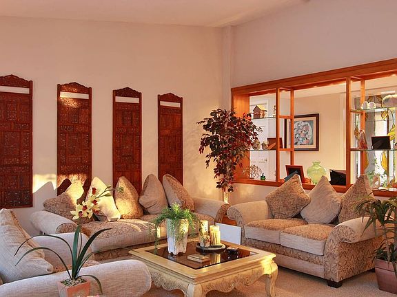 Live a charmed lifestyle in this quintessential Covenant estate with numerous horse trails nearby, a tennis court on site, and a resort style outdoor entertaining area including a pool and spa. Situated on 3.45 wonderfully private and serene acres adjacent to the protected San Elijo Preservation Lagoon, this home is ideally located on the easily accessible west side of Rancho Santa Fe. Featuring five bedrooms, five and a half baths and a predominantly single story floor plan, this beautifully upgraded retreat makes for model-perfect and easy California living. The well-lit gourmet kitchen and spacious master suite with highly upgraded his and hers bathrooms are standout features. The dedicated office and bonus room are highly desirous spaces that fulfill a busy family's needs. The spacious guest retreat offers complete privacy with views to the natural lagoon and is complete with a kitchen, great room and bedroom. A gated entry followed by a long, gracious driveway and exquisitely landscaped motor courtyard combine to make the curbside appeal of this home a classic Rancho Santa Fe storybook estate.