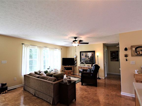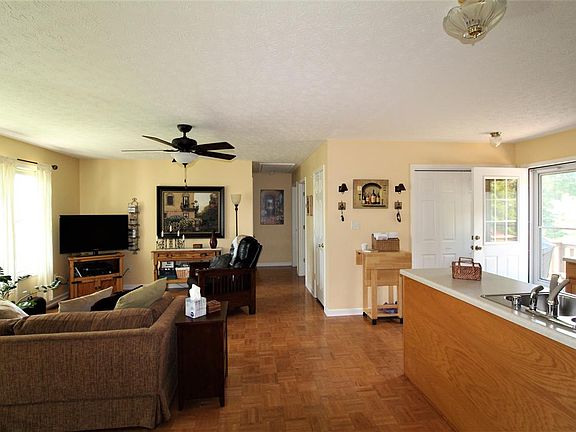 Immaculate, custom built, cozy, one-owner with great-room, 3 bedrooms and two baths. One bath has walk-in shower. Kitchen boasts walk-in pantry. New roof and HVAC within the past 6 months. Private 1.2 acre wooded lot, rock fire pit, walk-in closet in master bedroom. This home has tons of storage.