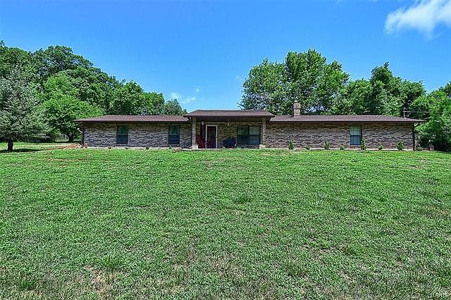 Unique home on a serene property with mature trees including some fruit bearing! This 2/3 bed, 2 bath, mostly brick/earth-style home nestled on almost 1 acre has an open floor plan. The living room features a wood-burning fireplace for an alternative heating option. The kitchen features a good amount of work space & storage, vinyl floor, ceiling fan, electric range, dishwasher, & SS refrigerator (stays), & is open to dining & living rooms. The master bed has generous closet space, ceiling fan, carpet & attached full bath w/ walk-in shower, single bowl vanity, & medicine cabinet. The other bed & office/possible sleeping room also feature good closet space, ceiling fan & carpet. A full size hall bath w/tub/shower combo & laundry room w/cabinets, ceiling fan, & carpet complete the living spaces. Oversized 2-car garage & driveway to accommodate multiple vehicles. Newer roof & gutters! If you like privacy, call today!