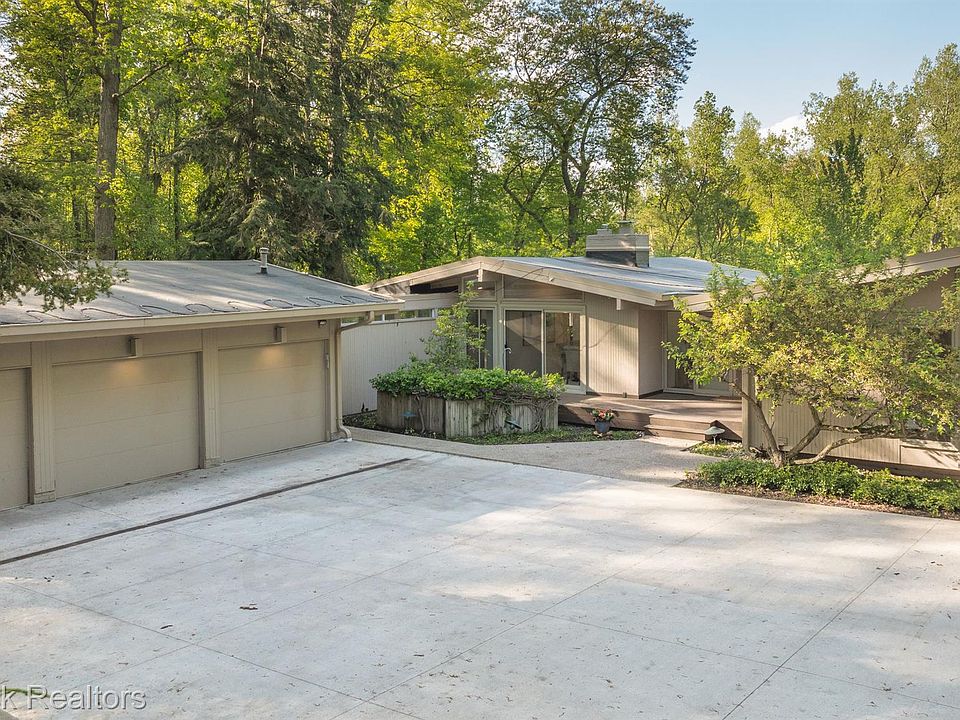 ONE OF A KIND CARL LUKENBACK MID CENTURY MODERN HOME THAT MUST BE SEEN TO BE APPRECIATED. TUCKED AWAY ON 1.41 ACRES OVERLOOKING NATURE IN ALL IT'S SPLENDOR. AN OPEN SUNLIT FLOOR PLAN IS THE HOME FOR THIS UPDATED RANCH FEATURING FLOOR TO CEILING WINDOWS, BACKYARD & ROOF TOP DECKS WITH BREATHTAKING VIEWS PLUS HARDWOOD FLOORS & MANY HEATED FLOORS T/O. CUSTOM WHITE & STAINLESS KITCHEN WITH ISLAND SEATING. CASUAL & FORMAL DINING, UNIQUE & CONTEMPORARY. LOVELY PRIMARY SUITE OFFERS NEWER BATH PLUS 2 MORE BEDROOMS & BATH ON THE MAIN FLOOR. 2 LAVS, 2 FIREPLACES & GLASS STAIRCASE. ONE LEVEL DOWN YOU WILL FIND ANOTHER PRIMARY BEROOM, FULL BATH, BILLIARDS ROOM & LOFT LIKE DEN PERCHED ABOVE A STORY GREAT ROOM FEATURING A STONE FIREPLACE, MINI KITCHEN/BAR & OVERSIZED DOORWALL TO THE OUTSIDE. ENTER THRU DOUBLE DOORS TO THE MOST AMAZING INDOOR POOL HOUSE WITH A 20X60 SALT WATER POOL. 2,000 ADDITIONAL SQ FT OF AN ENTERTAINERS DREAM COME TRUE. THIS IS TRULY A ONE OF A KIND OPPORTUNITY! UPDATED MECHANICALS, NEW POOL HEATER, NEWER ROOF & HEATED DRIVEWAY. 3 CAR GARAGE WITH WORK ROOM & BLOOMFIELD HILLS SCHOOLS. PERFECT FOR THE AVANT GARDE BUYER!