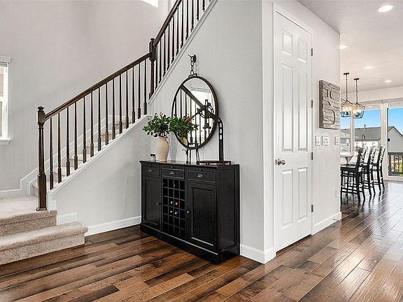 To call this property pristine would be an understatement. This highly sought-after Leah floor plan, built in 2021, still feels brand new and is packed with every upgrade you could want. The main floor features gorgeous wood floors throughout, complemented by an open and airy design with abundant natural light and 8-foot doors. The gourmet kitchen is a chef’s dream, offering quartz countertops, a cast iron gas range, stainless steel appliances, a large island with seating, designer pendant lights, and a spacious pantry. Adjacent to the kitchen is a large living room with a stunning gas fireplace framed with tile and elegant mantel. The expansive dining room boasts tray ceilings and designer light fixtures, perfect for hosting. Making your way to the upper floor you are first greeted by the dramatic staircase and wall of window. Upstairs, you’ll find three bedrooms and a versatile loft area, all adorned with upgraded carpet and padding. The spacious primary suite features a luxurious five-piece bath with upgraded countertops and vanity, along with a large walk-in closet. Two additional bedrooms, one with its own walk-in closet, a loft space that could serve as an office, rec area, or playroom and an upstairs laundry room with rough-in for a wash sink complete the upper level. The finished basement offers a cozy family room with a custom wet bar, a fourth bedroom, a beautifully finished 3/4 bathroom, and ample storage in the utility room. Step outside to a professionally landscaped backyard designed for relaxation and entertaining, featuring a large covered patio and a custom gas fireplace. Located in the desirable Copperleaf community, this home offers easy access to Southlands Shopping Center, Denver International Airport, parks, trails, and community amenities, including the Arboretum Clubhouse and outdoor pools. Situated within the Cherry Creek School District! Seller is willing to consider a concession for a 2:1 rate buydown!