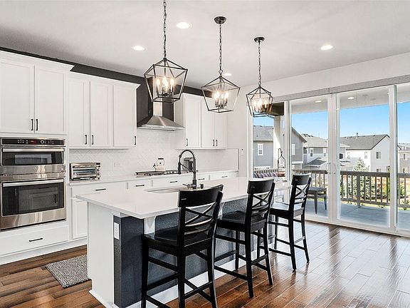 - Description: Gourmet Kitchen, Quartz Counters, Gas Range, Stainless Appliances, Large Island With Seating, Custom Lighting/Pendants.
