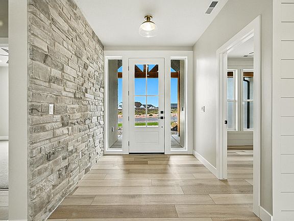 Brand new custom high end home in 4b ranch on almost an acre. Amazing unobstructed mountain views out the back toward Shurtz canyon. 5 bedroom, 3 full bathrooms. Bosch professional appliances with fridge. Custom hand stained light oak cabinetry. Stone accent walls in entryway and dining area. Large white oak trimmed mirrors in all bathrooms. Master suite with custom oak hutch and master bathroom with free standing soaking tub. Tastefully added ship lap throughout add a cozy touch. Oversized laundry/ mud room with extra storage room. You'll love the living room with coffered ceilings and crown molding and built in glass cabinets. 2 pantries. Bonus room/ suite with private bathroom over the garage. Oversized 3 car garage with finished epoxy floors.