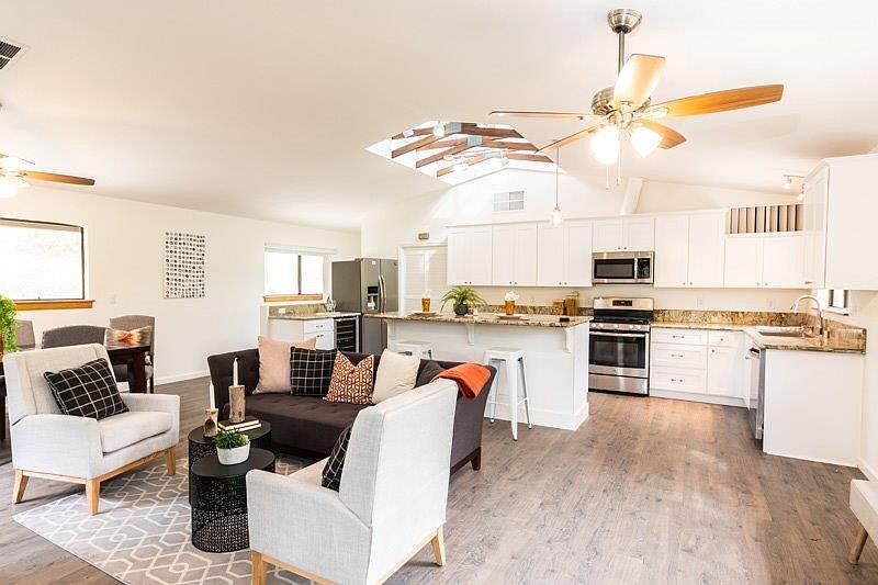This beautifully remodeled home is move in ready. The home features and open floor plan, completely remodeled kitchen, new paint, remodeled bathrooms,and so much more. The home sits on over one acre. One of the many highlights of the home is the oversized garage and workshop space. The exterior of the home has been newly painted and there are new rain gutters and exterior sprinkler system. This home is a must see!