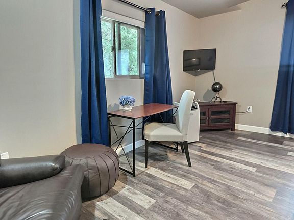 Month to month available till August. This space is in a detached garage that backs National Forest in quiet community. It has a small developed yard with patio/BBQ grill that opens up to open space filled with trees. Five minutes to groceries and south NAU, beautiful meadow with view of the peaks. Available until the end of July. Utilities included: water, gas, electric, internet, trash. No smoking, small pets are okay. 1-2 cars only please.