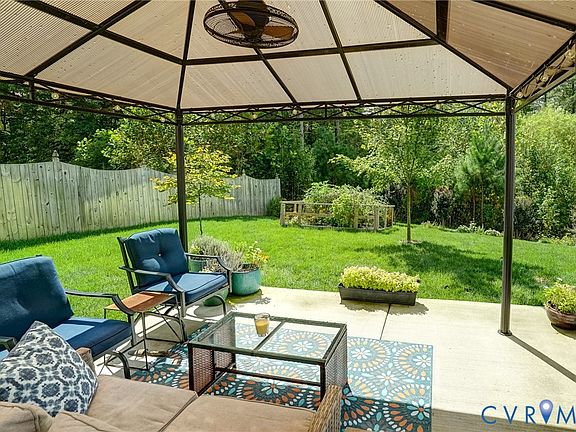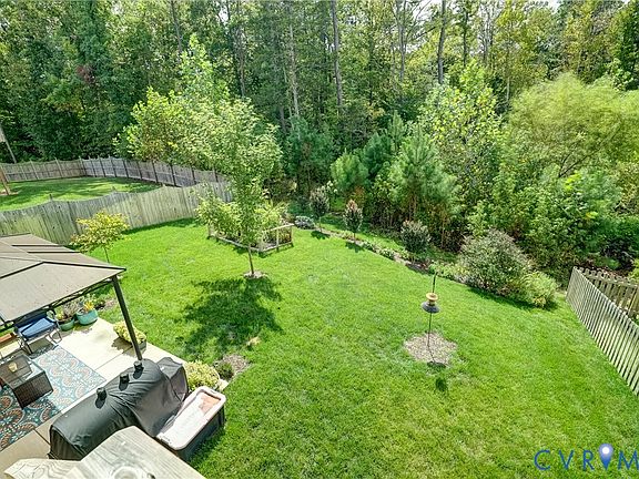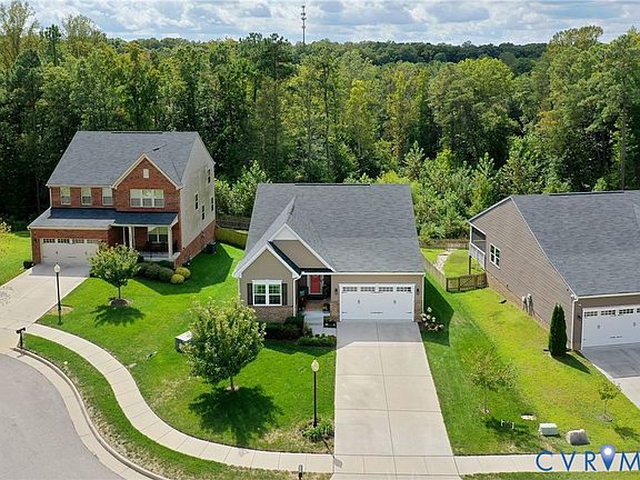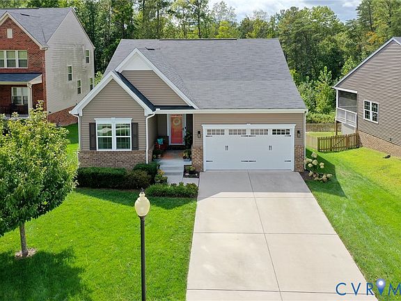 You won't find new construction in the area with this stunning view! Set against a sweeping wooded backdrop, this immaculate 3-bedroom, 3-bath home with 2-car garage and walk-out basement blends comfort, style, and privacy. Main Level: Bright and open, the kitchen, dining, and living areas flow seamlessly together, complemented by the primary suite, a second bedroom right next to a full bathroom, and a flexible bonus room. Step out onto the rear porch to enjoy the view! Lower Level: The walk-out basement expands the living space with a spacious recreation room, third bedroom, finished storage room, and additional unfinished storage space. From here, step out to the landscaped backyard, complete with patio, gazebo, and irrigation system. Main level carpet in living area and flex room replaced 3 years ago. Additional features: bathrooms all have tile floors, laundry on main level near primary bedroom, and pull-down shades on both sides of rear porch. Adams Park community is off Iron Bridge Rd / Rt 10, close to Chesterfield line, with easy access to Chippenham Parkway.