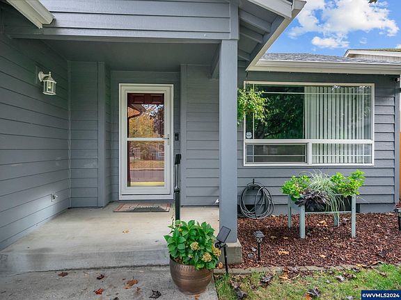 This charming 3 bed/2 bath single-level home features vaulted ceilings. The kitchen features wood cabinets, & stainless steel appliances. The primary suite includes a walk-in shower, double sinks, and a walk-in closet. Stay comfortable year-round with a gas furnace and AC. Step outside to a covered back patio and a fully fenced yard, ideal for relaxation and entertaining.