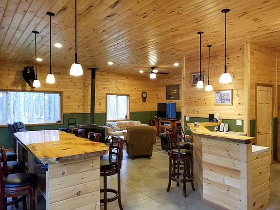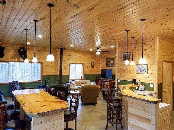 Secluded 3 bedroom, 1 full bath home, built in 2016 w/attached 2 car garage and nicely located on 40 wooded acres. Knotty pine ceilings with recessed lighting and 10' ceiling height throughout home and garage. Home is well insulated and offers 2x6 stud walls, vinyl siding, lots of vinyl windows for natural lighting, propane forced air furnace (1 year old), cozy wood burning wood stove, 5" well, 100 amp service, and generator hook up. Driveable trails through property lead you to 3 elevated box blinds and approx 2 acre food plot with nice plush clover. Property borders a corn field attracting even more deer and wildlife as well as some wetlands towards the front of the property, which would make an ideal location for a pond with spectacular views from the home. This home could be used for year round or seasonal use. Bunk beds will stay, but furnishings and appliances are negotiable.