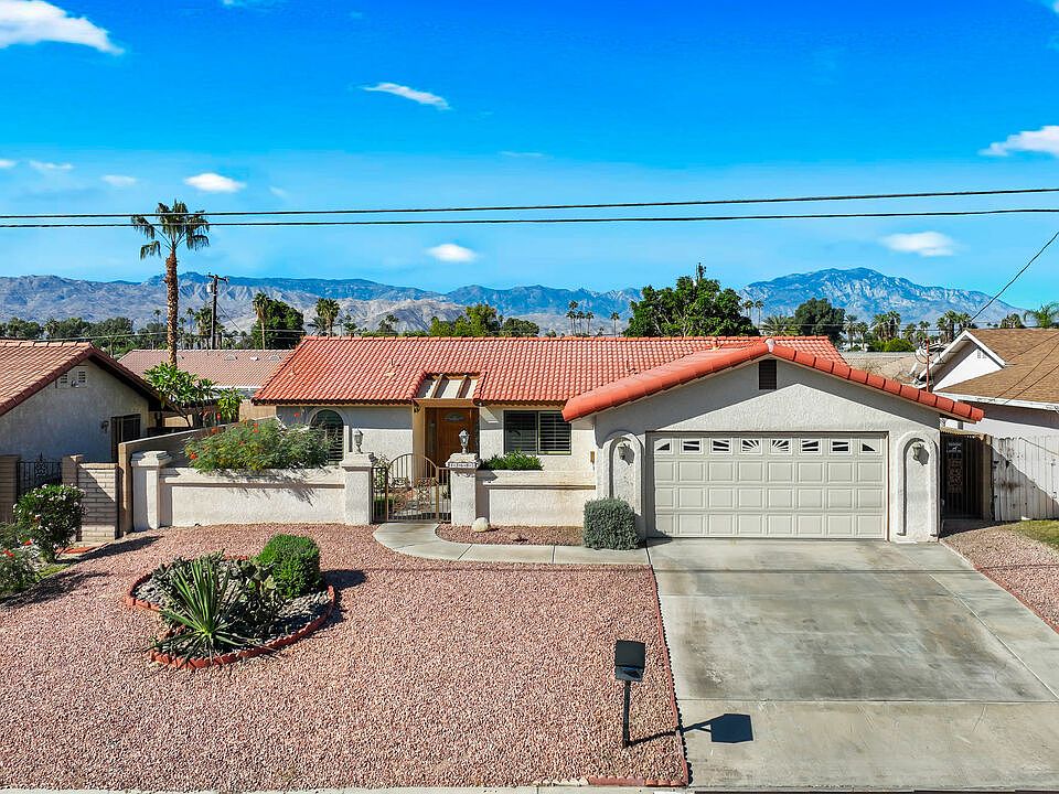 Centrally located in the desirable Palm Desert Country Club, this beautifully maintained home offers a light-filled open floor plan with 1,538 sq. ft., three bedrooms, and two baths. The remodeled kitchen shines with NEW quartz countertops, a waterfall quartz bartop, and stainless steel appliances, opening to a spacious great room with a fireplace and sliding doors to the private backyard. Enjoy the PebbleTec pool and spa with breathtaking southwest mountain views, low-maintenance landscaping, and a front courtyard for added curb appeal. Additional highlights include tile flooring throughout, plantation shutters, ceiling fans, indoor laundry, and a dining area. This home has been meticulously cared for by the owners and combines timeless charm with modern upgrades. All minutes from world-class golf, the Indian Wells Tennis Garden, Acrisure Arena, and the shops and restaurants of Old Town La Quinta and El Paseo. Palm Desert residents also enjoy discounted golf at Desert Willow.