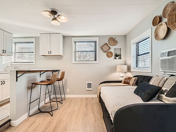 Small but mighty! Enjoy a simplified lifestyle of minimalism and declutter with this adorable furnished studio. Easy to maintain and remodeled top to bottom- New luxury vinyl wood floors, fresh paint, windows, quartz countertops, tile backsplash, new cabinets, in-unit washer/dryer, and totally remodeled bathroom. No need to worry about utility bills- Water, Xcel, and Trash included!! If you have a dog, they will be in paradise with the massive fenced in backyard. Includes 2 off street parking spots. Furnishings includes West Elm bar stools, dresser, night stand, and twin daybed with storage underneath. You are close to all of the action on Tennyson Street and Wheat Ridge's W. 38th Ave. corridor. Only four blocks away from the Yates retail shops (Vin Rouge Wine Bar, Queen City Collective Coffee, and more!). Easy access to Sheridan and I-70 to get wherever you need to go. This charming remodeled house is the one you've been looking for! Utilities included! 12 month lease. Apply through zillow link.