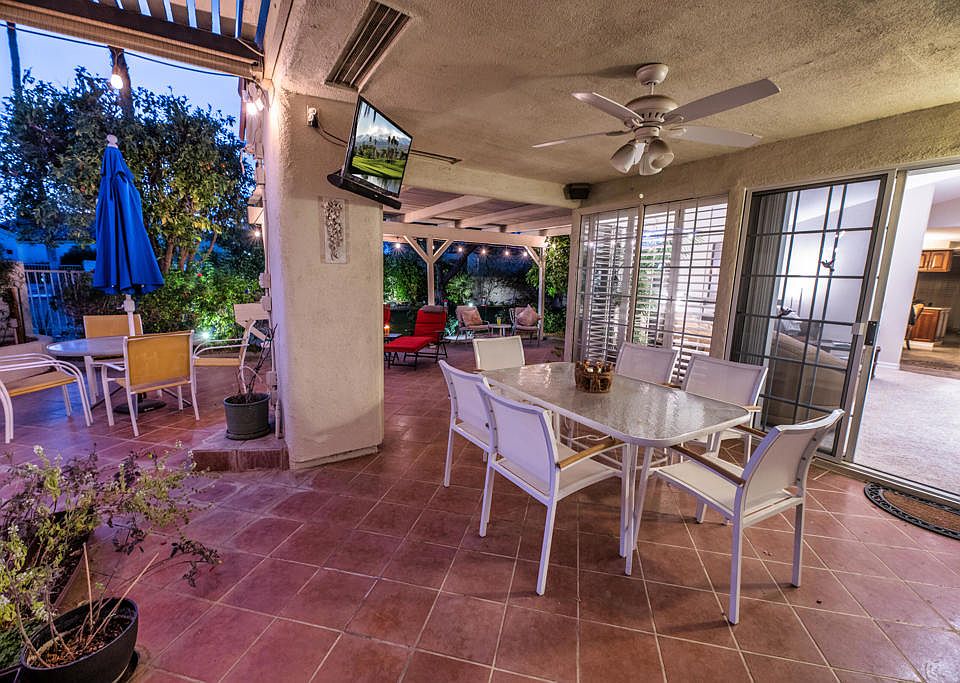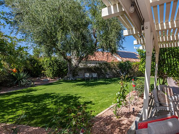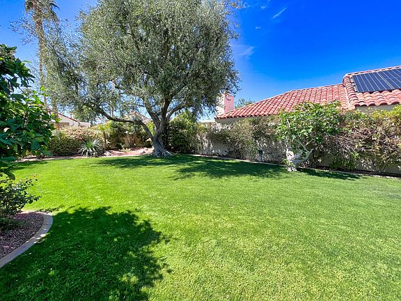 Stunning panoramic mountain views from this home inside highly desired Desert Breezes gated community in Palm Desert. Graced upon a premier interior OVERSIZED private lot at the base of the cul-de-sac. Lush manicured grounds, mature citrus and shade trees offer plenty of sun or shade. Enjoy a variety of outdoor activities with walking trails, tennis and pickle ball courts, basket ball court, as well as several community pools, plus clubhouse with activity center and fitness center. Step out onto the large covered wrap around patio for a perfect indoor/outdoor living experience complete with TV and string bulb lighting that leads to neighboring pool & spa. Inside you will find 3 bedrooms and 2 bathrooms including a totally remodeled kitchen featuring newer cabinets, stainless steel appliances, 5 burner cook top and upgraded countertops. With an open floor plan filled with abundant natural light coming through the walls of glass this home truly brings the outdoors in! Super low HOA fees include all the community pools, sport courts, 24 hour security, trash, lighted tennis courts and front yard landscaping. Located near world renowned Indian Wells Tennis Garden, world class shopping & outstanding restaurants, polo fields, theatre, and the new Acrisure arena!- there's something for everyone here! Offered turnkey furnished and ready to move into today. Full time playground, winter retreat or seasonal rental. Don't miss out on this rare find - come see it today!