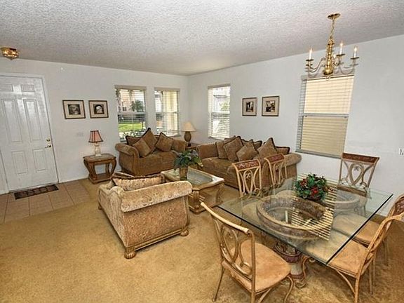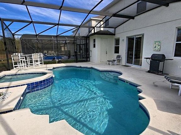 AWC - Taking Backup Offers Large Retreat home nestled against conservation area, privacy with wooded view beyond large pool, spa and screened deck area. Enjoy the heated pool, cuddle in the comfortable furniture, have fun in the well equipped games room or enjoy the theme parks, world class entertainment, golf courses, dining and shopping nearby. Less than 90 minute drive to east and west coast beaches, Open Floor plan still has enough separate family areas to enjoy together or spend a little quiet time alone. Large eat in kitchen with 42" cabinets and excellent appliances opens to large family room and out to pool and deck area. Perfect for entertaining. Downstairs bedroom with private bath in addition to huge master suite upstairs. 4 other generous sized bedrooms. Excellent rental history makes this a turn key short term rental business opportunity. Or just purchase this to enjoy yourself as a vacation home or easy access to major highways makes this an excellent primary home for a short commute to many employment opportunities.