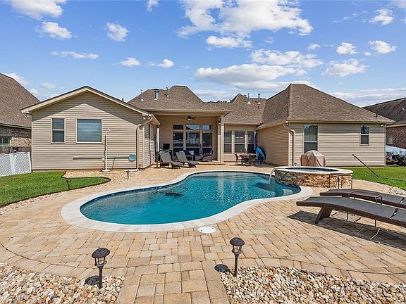 MUST SEE this pristine and charming home right in the heart of Madisonville. Owners took great care of this Home and is in EXCELLENT condition. Nicely polished wooden floors in living, foyer and dining areas, intricately detailed crown and base molding throughout the home. Granite countertops and tile flooring in kitchen and breakfast area, laundry room and office / bonus room. The dining room opens up into the living area. The kitchen and breakfast areas share a wonderful view of the backyard and the heated inground saltwater pool and spa surrounded by travertine and brick pavers with a gazebo. The front and back yards are nicely manicured and well kept. Seller willing to sell furniture or include in sale with an acceptable offer.