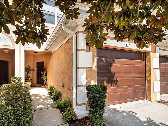 Expect to be impressed with this charming 2BR townhome in The Towns at Legacy Park. Common living areas downstairs with bedrooms upstairs. Ground floor features open living and dining space that's versatile to arrange as you see fit. Cozy prep kitchen with plenty of counter space and breakfast bar - appliances included. You'll appreciate the walk-in pantry (under staircase) and the convenient half bath. Split bedroom plan with master suite in the back. Spacious bedroom with two walk-in closets and ensuite bath with shower. Second bedroom (in the front) also has an ensuite bath and walk-in closet. Notable feature - the blinds in the bedrooms are custom, double honeycomb room darkening/cooling - these will give you a big savings on your electric bill! Laundry closet is upstairs. Screened lanai has a pretty treed view out back. Garage has a wall of built-in shelving that's perfect for your storage needs. Quick walk to the community pool/spa. Great location - around the corner from SR 27 and a short drive to SR 192, I4, and essential shopping. Home shows well - come see all that it has to offer!