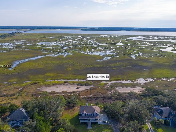 Welcome to 437 Broadview Drive! This Masterpiece is located on over an acre w/ jaw dropping views of the gorgeous marsh & Broad River. Over 100K+ worth of home improvements in 2020. This 5 bedroom home offers over 3300+SF, 3 1/2 BA & 3+ car garage. High, smooth ceilings in the living room inviting loads of natural light. First floor features primary bedroom, powder room, dining room, kitchen, laundry room, living room and expansive back/screen porch. Elevator shaft in place for easy installation. HVAC & Tankless Water Heater both replaced in 2019. Knowles Island features 132 acres & a community boat ramp, dock & fishing pier. 2023-10-03