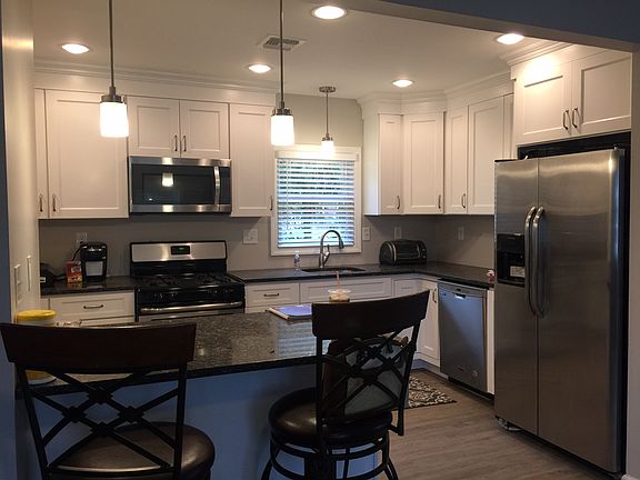 This home is not currently for sale or rent. Beautiful home in desirable neighborhood recently renovated from top to bottom. New roof, siding, electrical service, heating and air conditioning, doors and windows, lighting, and bathroom. Kitchen boasts new Wolf cabinets, island and pantry, stainless steel appliances, quart countertops. Two bedrooms with another room which could be used as an office, dining area or 3rd bedroom. Year round sunroom opens to patio and large yard. New laminate and tile flooring throughout. New stackable washer and dryer with enclosure.