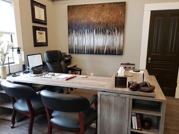 Large recently remodeled office in downtown historical building. Small, historical details add charm to this updated office. Office has vaulted ceilings with tons of natural light. Use of kitchen, reception area, bathroom, and storage room included. Off-street parking included as well. Tenant will share utilities with the other 2 office tenants which includes internet & phone, security system, landscaping, water, sewage, and electricity.