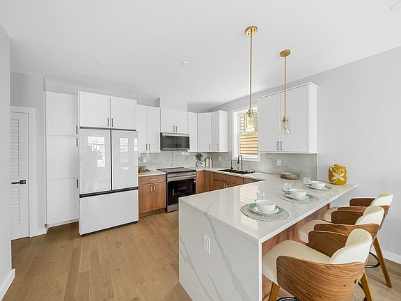 Special offer : Brand new stage Furniture Included until labor day ! Experience unparalleled luxury living at FEDO condominiums, equipped with latest technology and moreover fastest 1 Gig wireless Verizon Fiber-Optic internet that is free of use for everyone in the building!! This exquisite 2 bed, 1.5 bath unit offers a blend of sophistication and modern convenience. Step into a world of elegance with smart Samsung appliances, including an induction air fryer oven, and a designer kitchen adorned with Calacatta countertops. Revel in the stunning sunset everyday from your large French windows and relax watching the unobstructed city views from your common roof deck . Indulge in the spa-like bathrooms featuring wall-to-wall tiles, smart toilets and LED vanity mirrors. The building's stylish high quality Nichiha exterior siding adds a touch of contemporary flair.