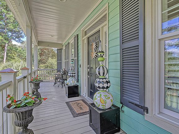 Beautiful .59 acre pond lot 4-bedroom, 4-bathroom Lowcountry-style home in the beautiful neighborhood of Darrell Creek is an entertainer's and gardener's dream! Upon entering the home from the delightful full front porch, you are greeted with an open floor plan, red oak hardwood floors, plantation shutters, 9-foot ceilings, and an abundance of natural light. Continuing in is the family room with gas fireplace that is open to the dining room and chef-inspired gourmet kitchen. The kitchen features granite countertops, counter seating, under cabinet lighting, island with a 36'' and a 5 burner Wolf gas cooktop with downdraft ventilation. The open kitchen area is perfect for entertaining family and friends as you can cook and socialize at the same time.Walk out onto the large screened back porch and deck from both the dining area and a separate den/office/flex room with an adjoining fourth bedroom above the garage; this area is ideal for an in-law suite or multi-generation living. The primary bedroom suite is on the main level and features a spa-inspired en-suite bathroom with dual vanity sinks, a stunning tile shower, and an oversized walk-in closet. Two additional spacious bedrooms are located upstairs, each with a private full bathroom, walk-in closet, and access to adjoining attic space. The bedroom on the right features a small nook perfect for a playroom, craft space, or additional storage. At the top of the stairs is an open area that could be used as a reading spot, computer area, or just enough room for a Peloton! The crawl space is acclimated making it great for storage! The private exquisite big fenced-in backyard is a nature lover's delight with multiple flowers, numerous fruit trees, berries, gardening beds, a fire pit, a sitting area, a food prep station, a quaint raised shed, and a flagstone patio to host BBQs! Butterflies, bees, and hummingbirds frequent the garden and are a joy to watch. The driveway is long, and the front yard is lush with a large grass area, beautiful landscaping, and breathtaking oak trees. Darrell Creek has a neighborhood pool, mature landscaping and is just minutes from Mount Pleasant schools, Costco, shopping centers, and a local hospital. This home is a must-see!