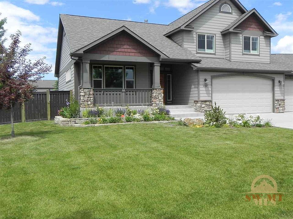 Wonderful family home in one of Bozeman's most desired neighborhoods, backs to open space. Large formal dining room off entry and kitchen with hardwood flooring.Kitchen has center island, gas range, convection oven, tiled floors. knotty alder cabinets and crown moldings.Main level living room has concrete floors with radiant heat and gas fireplace.Nice sized master suite with mountain views, bath with double vanities, quartz countertops. Lower level family room, den office and bath.Buyer to verify sq. ft.