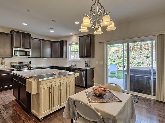 - Kitchen: Counter Tops-Granite, Eat In, Pantry, Island, Floors-Hardwood, Cabinets-Stained, Backsplash-Tiled, Recessed Lights