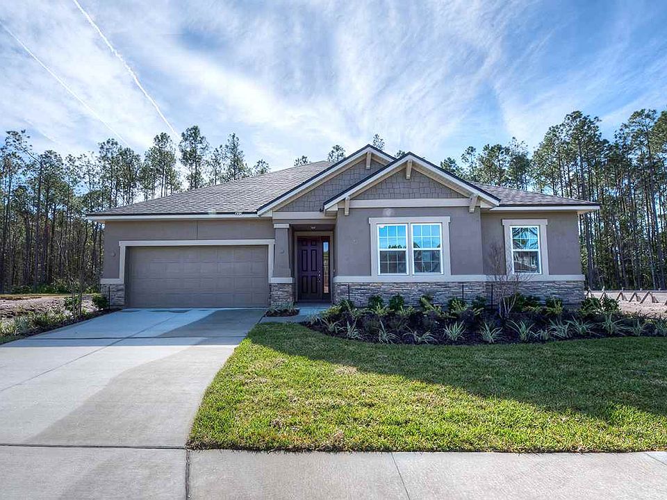 NOW COMPLETED! This new Richmond American home offers a ranch-style plan, plus a bonus room upstairs (with full bath & walk-in closet) for added entertaining space. Located on a beautiful greenbelt home site. Exterior include covered lanai, stucco exterior with stacked stone accents & architectural shingles. Highlights include formal dining room, island kitchen, granite counters, 42'' upper cabinets, double ovens, gas-cook top, microwave, & refrig plus breakfast nook. A MUST SEE! Dalton, elevation C, floor plan. The owner's suite boasts a garden tub & separate shower. Located only 1 mile west of the St. Augustine Outlet Mall, this community is convenient to I-95.