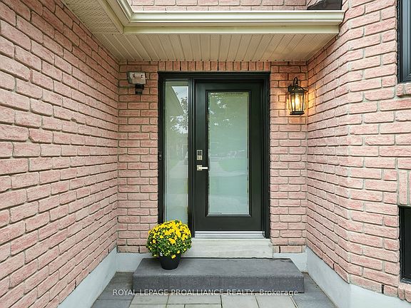 Designed with comfort, elegance, and functionality in mind, this property offers exceptional Designed with comfort, elegance, and functionality in mind, this property offers exceptional Home Depot, and Terry Fox School, and just minutes from downtown. Scenic walking trails, parks along the creek, and the YMCA are all within walking distance. Inside, expansive custom windows allow for plenty of natural light throughout, while elegant hardwood flooring adds warmth. The gourmet kitchen features a peninsula island and abundant cabinetry, designed for entertaining and seamlessly connected to the open-concept dining and living areas. The fully finished basement includes a natural gas fireplace and a walkout to the backyard deck. The spacious deck off the kitchen functions as an extra summer room, perfect for relaxing or entertaining. The exterior offers an attached 1 12-car garage with exterior opener, driveway parking for four vehicles, and a lovely, green backyard-ideal for enjoying the outdoors while still being minutes from town and Hwy 401. Recent upgrades make this home truly move-in ready. Highlights include a custom kitchen with quartz countertops and waterfall peninsula (2023), renovated bathrooms, refinished hardwood flooring, new stairs and railings, LVP flooring in the basement, new appliances, expanded front patio, new windows, doors, patio door, awning fabric, garage door, water softener, new decks, and a custom closet organizer in the primary suite. Additional improvements include ceramic tile at the front entrance, extra attic insulation, furnace, and central air.