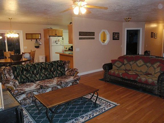 This beautiful Home has 2 bedrooms and 2 bathrooms upstairs. With a large living area and kitchen and dining room. With hardwood floors throughout. The basement has 2 bedrooms and 1 bathroom. With a large living area and a good sized storage room with storage under the stairs also. It also has the laundry room and a walkout door to the back yard. The yard is fully landscaped with a sprinkler system that runs off of the irrigation water. A large garden area and lots of room to park toys.