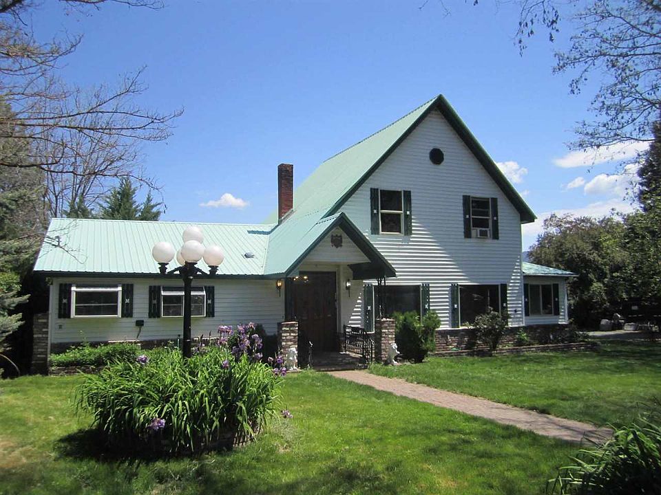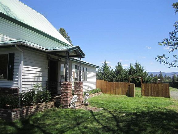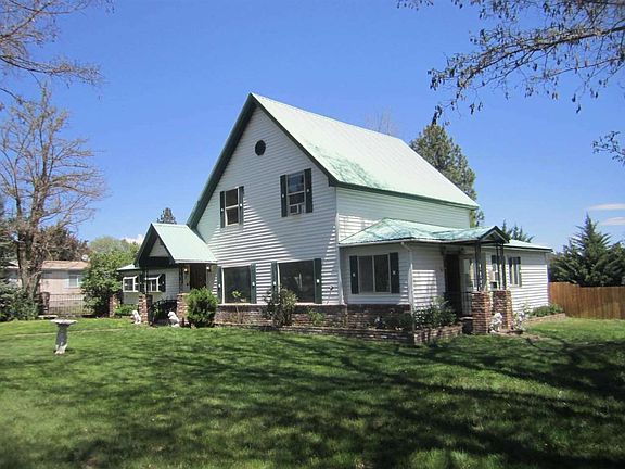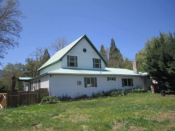 This large 4 bedroom and 2 bathroom is on almost 2 acres in town with city services. Extensive wood used throughout the home. Large master suite and bathroom on the lower level with remaining bedrooms upstairs. Living room with fireplace, family room, formal dining area, separate pantry/laundry and den/office. Multiple monitor heaters, fireplaces and window AC. Extensive landscaping with rose garden, covered patio and plenty of room for a garden. Fenced yards and the zoning allows for animals. Has a detached 2 car garage with carport and 2 other metal garages as well as a 30' x 40' shop with drive through doors. Property is held in a Trust and being sold "As-Is". With a little clean up and updating this home would be a showcase. Sellers are motivated and will consider reasonable offer. SECURITY CAMERAS ARE IN USE. NOTE: The accuracy of the information provided is deemed reliable but is not guaranteed, is subject to change and should be independently verified.